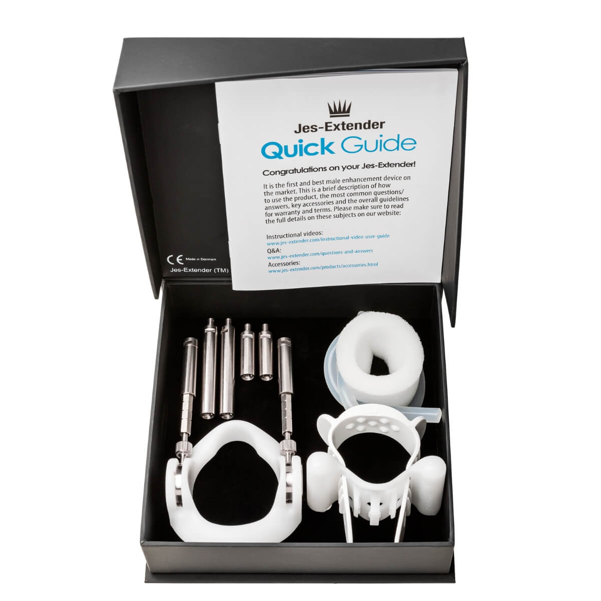 Jes-Extender представляет собой аппарат для удлинения мужского полового органа с помощью растягивающего усилия. Его действие основано на способности реакции тканей при воздействии на них длительного растягивающего усилия, которое вызывает в этих тканях увеличение количества клеток. Эта модель может быть использована только на пенис размером до 17 см . Комплектация: удлиняющие стержни (2х5 см, 2х2,5 см), фиксирующий ремешок, силиконовый жгут-фиксатор, смягчающая прокладка, упорное кольцо с пружинным механизмом. К товару прилагается DVD-инструкция, инструкция на русском языке, набор ключей.