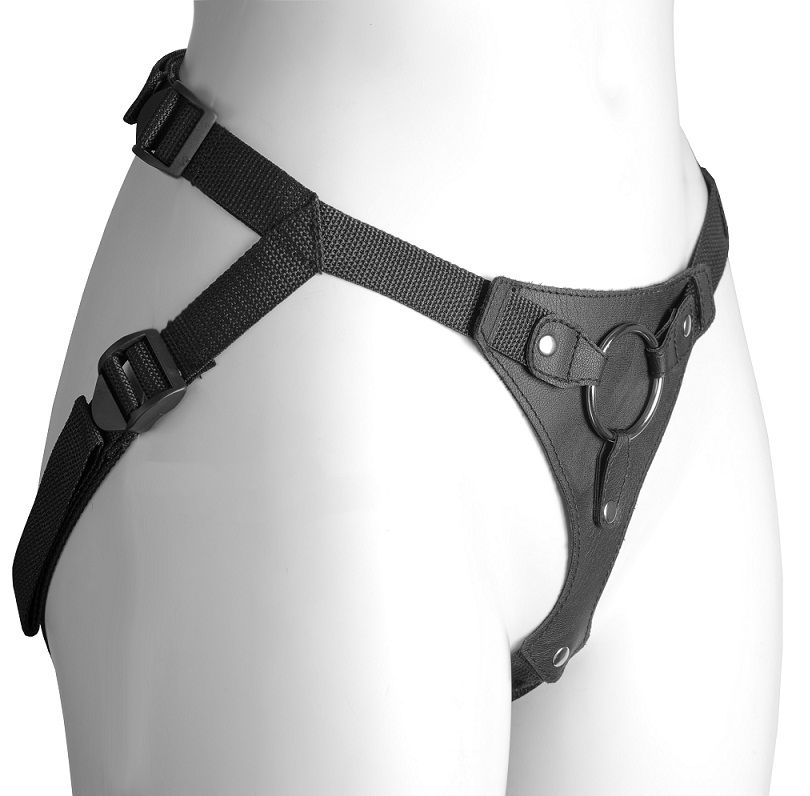 Черный женский пояс-трусики с кольцом для фиксации насадок.