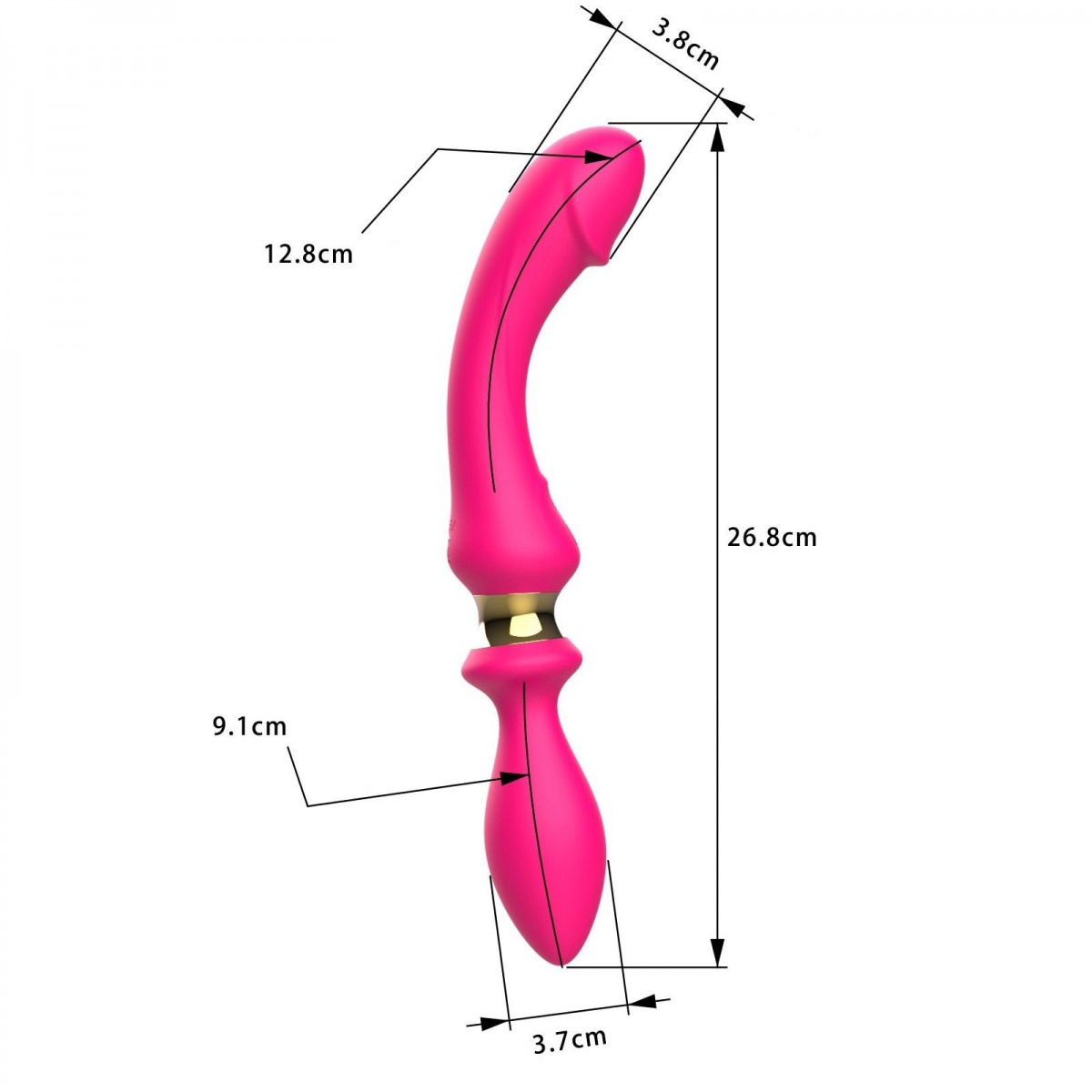 Розовый двусторонний вибромассажёр. Может использоваться обоими партнёрами - для вагинальной или анальной стимуляции. Имеет 10 режимов вибрации. Рабочая длина большого отростка - 12,8 см, диаметр - 3,8 см. Рабочая длина малого отростка - 9,1 см, диаметр - 3,7 см.